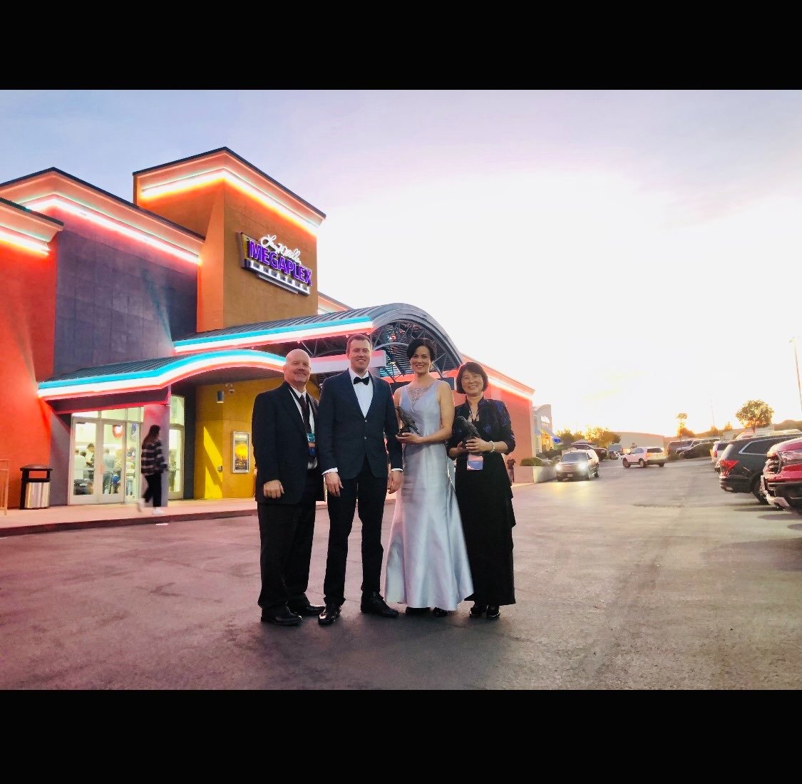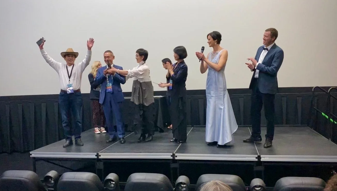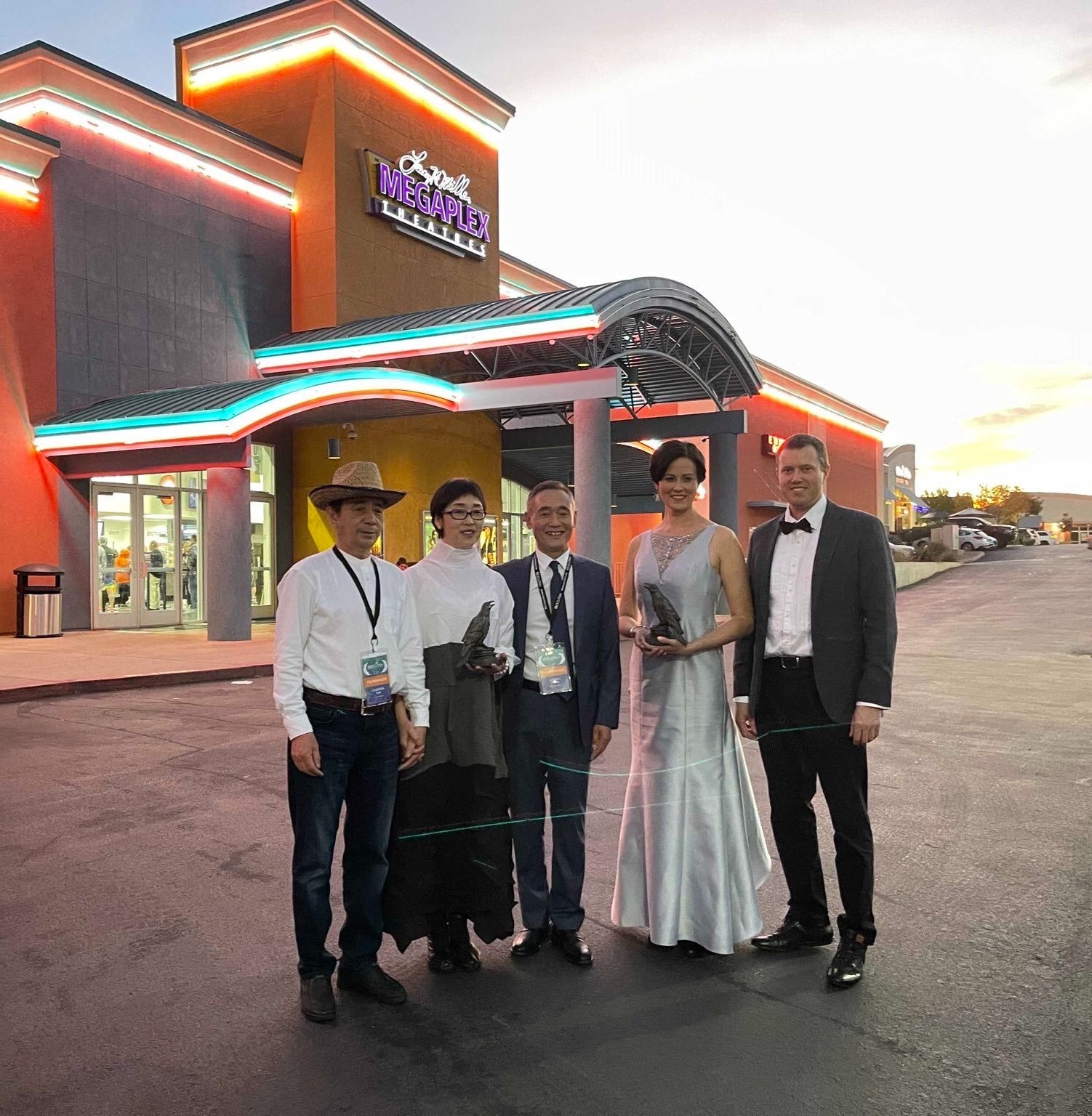 (From left to right) Gordon, Leo, Yifei, Executive Director - Stephanie Li, Director - Kay Rubacek, accepting the DocUtah Humanitarian Award